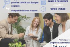 Gratuit – Inscription obligatoire en ligne Afterwork animé par Delphine Auboiroux, consultante RH, autour des clés de l’engagement durable : du premier salarié aux équipes en place. Comment passer du premier recrutement