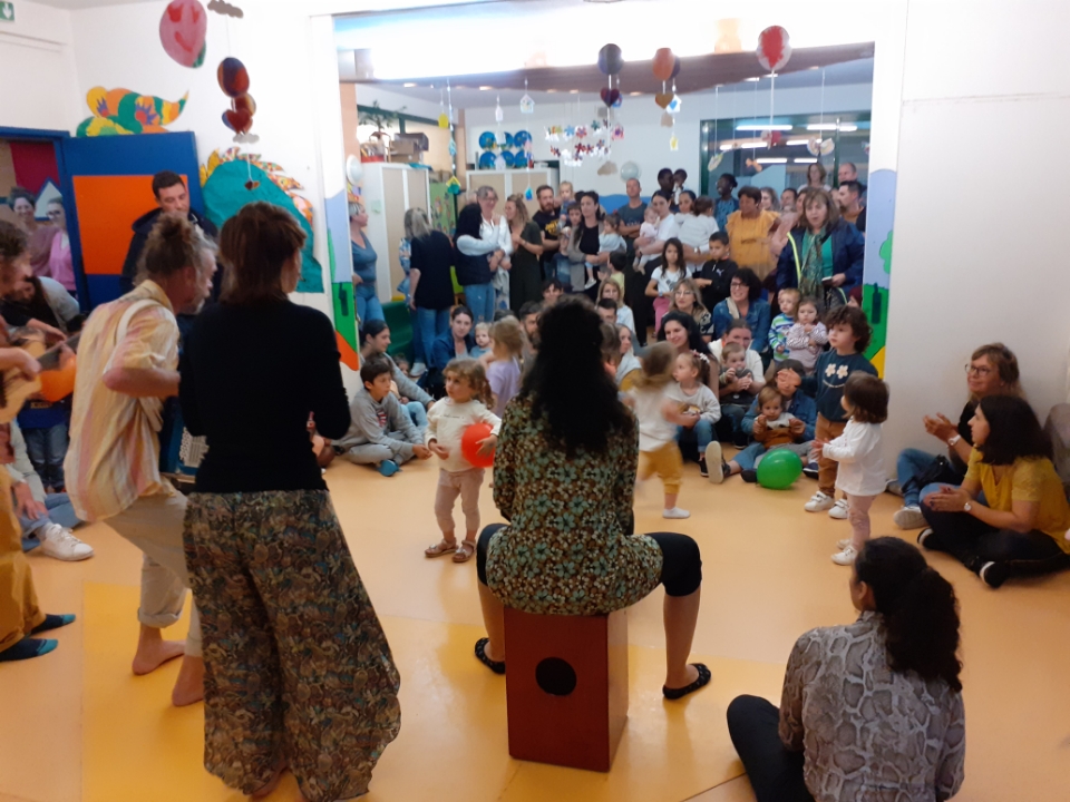 En juin, un pot musical est organisé pour réunir les familles, les professionnelles et les enfants. C’est aussi l’occasion de dire au revoir aux grands qui quittent la crèche familiale pour l’école.
